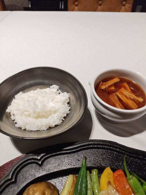 久々にお邪魔しました。今日は黒毛和牛が品切れということで、神戸牛のステーキランチ(150g)とグラスワインをオーダー。一皿目のサラダのボリュームに驚き、数種類の焼野菜の上に乗ったステーキのボリュームに驚き、もちろん味にも驚き、の贅沢ランチでした。ご馳走さまでした!