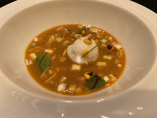■スープ・ド・ポワソン 未利用魚で仕上げルイユをのせた軽やかなメレンゲを浮かべて