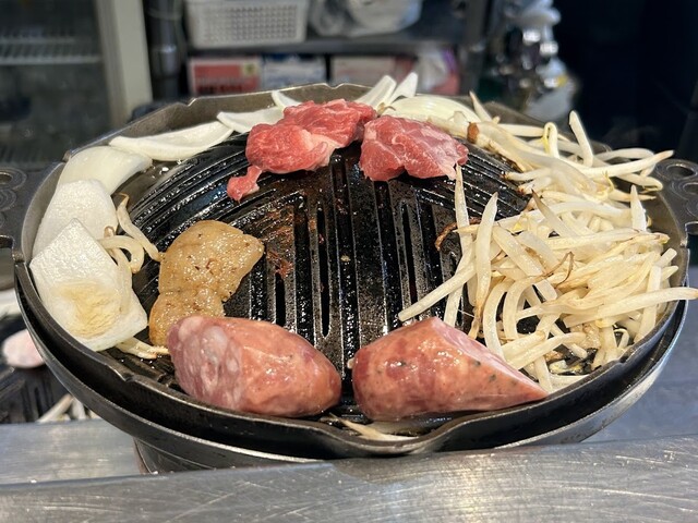 ■初回野菜¥300*2…肉汁を吸収し、その甘みと旨みが増し、口の中で溶けるような感覚。 ■N)ジンギスカンセット¥1,230…香ばしくてジューシー。一口噛むと、肉汁が口の中に広がる。