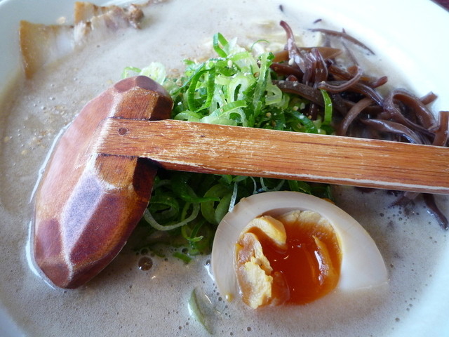 濃度は、天下一品ぐらいドロッとしています。。味は、濃くも薄くもなく。。もうちょっと濃いほうが、インパクトは出るとおもいますが、実際食べる分にはこれぐらいがいい感じです(*^。^*) 豚骨な雰囲気ですが、鶏もいる感じ。。。 臭みはありませんが、ガッツリ男のラーメンって感じです(●^o^●)良いラーメンだと思います(*^。^*)