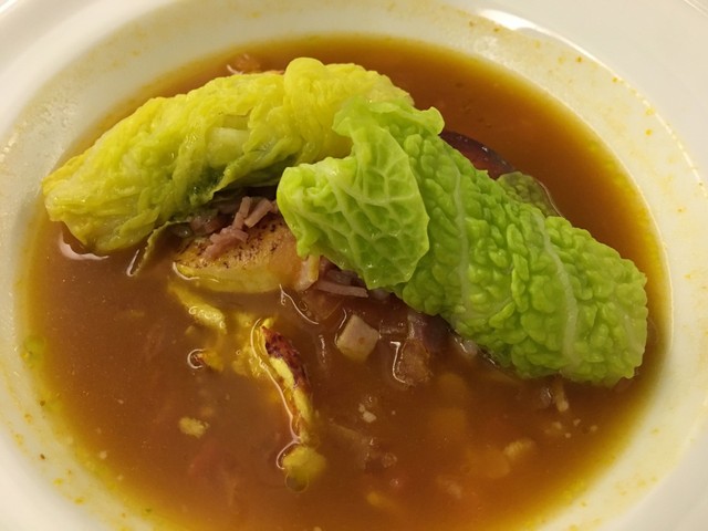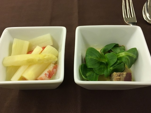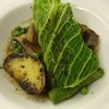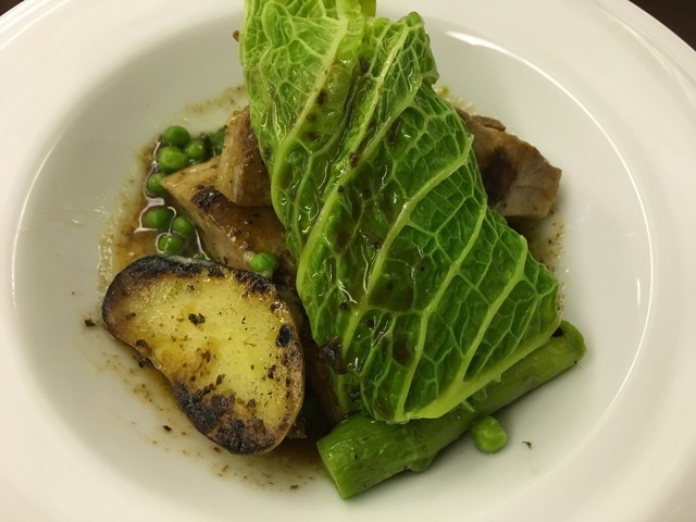 乳飲み子羊のソテー 緑アスパラのグリル オリーブのソース