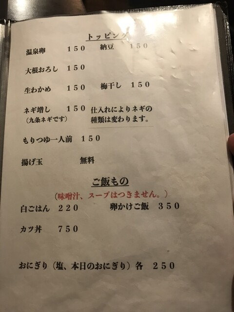 お店のウリは肉汁やグリーンカレーなどのつけうどんのように見えましたが、メニューにひやかけ(小・600円)があるのを見つけたので即決定。どれだけ寒くてもひやかけがあるなら食べたい人です*\(^o^)/*なお、入ってすぐのところ(?)に黒板メニューもあるようで、注文前にそちらを確認するのもお忘れなく。