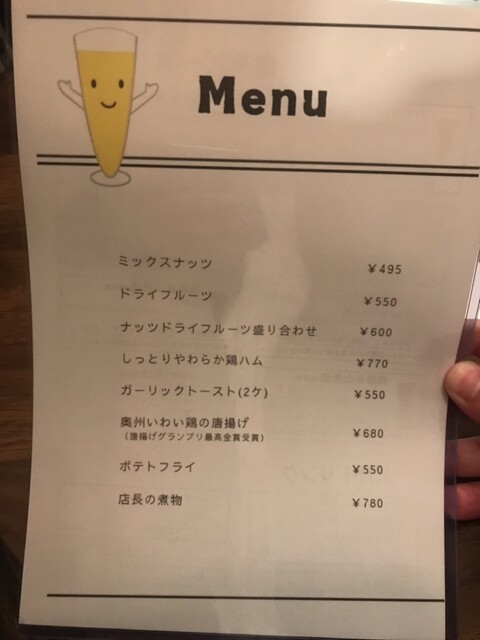 以前はフードもシェフ拘りのものを提供しておられましたが(現在は新橋の立ち飲みバルで腕を奮っておられます)、駒込では軽食のみ。軽くつまんで軽く飲むと言うスタイル(^ω^)