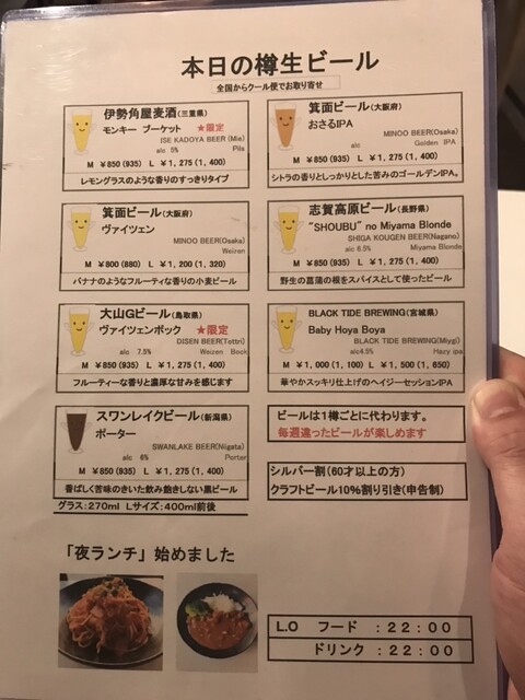 多彩なビールの味わいもさることながら、こうした山菜系のメニューがビアバーらしからぬ新基軸を打ち出しているかと。実際前客の方も近くの方だったようですが、ビールに舌鼓を打ちながら帰り際には「次は何の山菜が入るの〜?」なんて聞いておられました( ◠‿◠ )