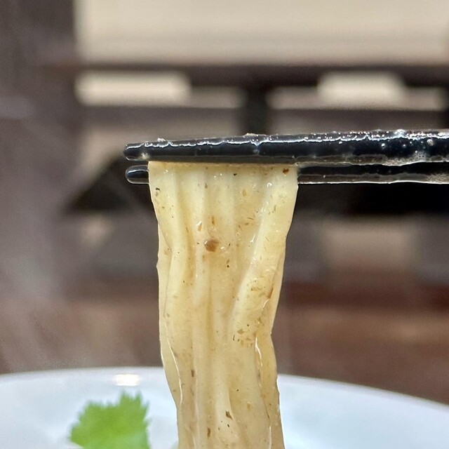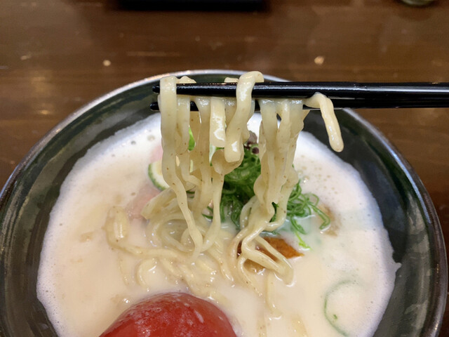 スープの濃厚さをしっかり受け止め、噛むほどに小麦の甘みが広がる。