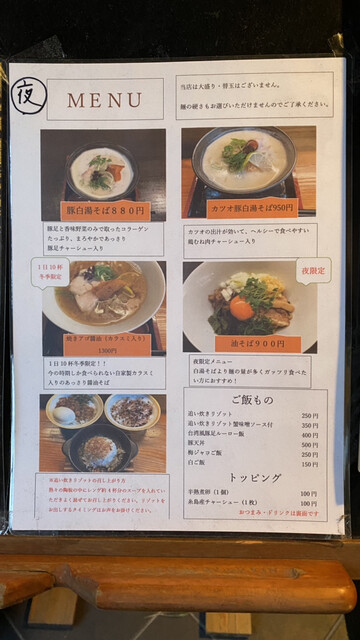 住宅街に佇む、豚白湯スープをメインとする希少なお店。定番メニューも素晴らしいですが、是非食べて欲しいのが毎季節の限定メニュー。ほんとに、素晴らしいクオリティ。