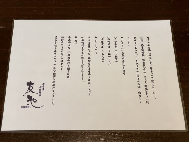 Tomoike is a rare and exceptional shop specializing in pork-based paitan ramen.
