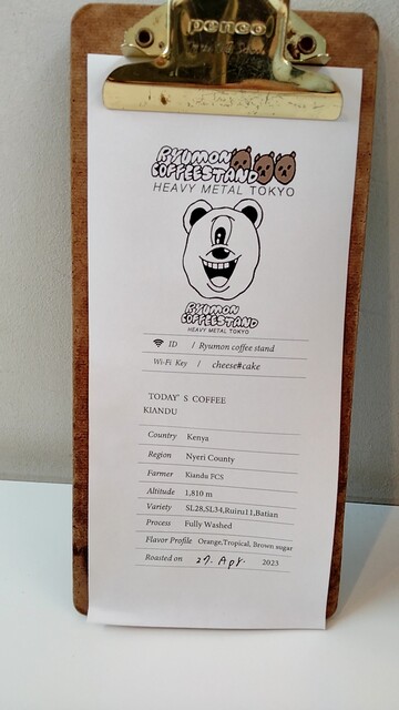 雨の中で伺うと、ペーパータオルをカバンを拭くように差し出して貰いそれで心は奪われました。「Hカフェラテクマのデコレーション付きとティラミス」を注文し2階席へ、テーブルにはこの日のコーヒー豆の収穫地の説明がありコーヒーに対する姿勢を感じます。良い時間を過ごせました、ご馳走様でした、ありがとうございました。