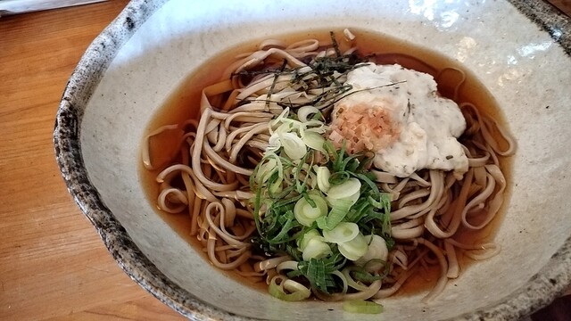 長野県松本から上田に向かう途中「天然きのこ」の文字が目に入り戻って入店、季節的にどうかなと思いながらも入店すると「本日のお薦めキノコ蕎麦」の文字とザルに盛ったキノコ類が目に入りました。「キノコの天ぷら・自然薯蕎麦冷・キノコ蕎麦冷」を注文、「タマゴタケ」は初めていただきましたがコリコリとした食感が良く、「キノコ蕎麦」は10種類入っていると仰っていたキノコからの出汁も又美味しく素晴らしかったです。ご馳走様でした、ありがとうございました。