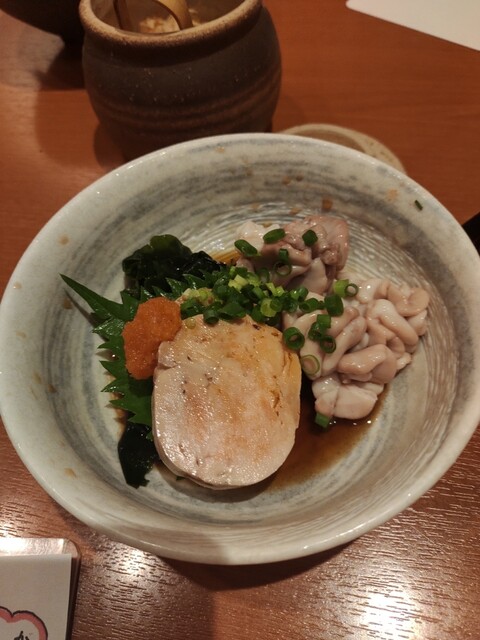 白子は濃いめまったりで美味しいやつ。あん肝も脂があり美味しい(美味しくないあん肝は水分脂分が足りなくパサパサしてる気がします)