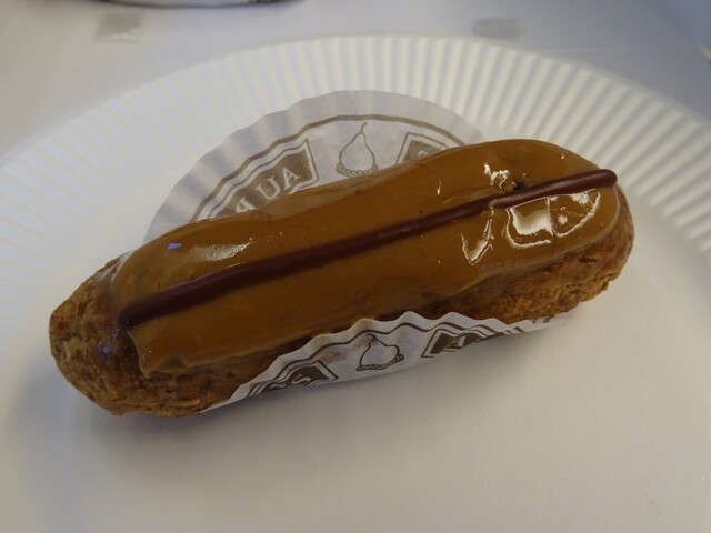 私は、シュー・パリゴーよりもエクレールの方が好きだ。上にかけたフォンダンは、かなり甘い。それがいい。