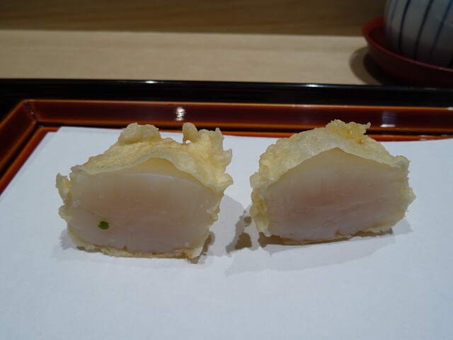 えびは、やや太め。中心まで火は入っており、レアではない。ぷりぷりしているし、甘さもあるけれど、火が入り過ぎなのは、店の方針なのか?などと考えながら食べる。