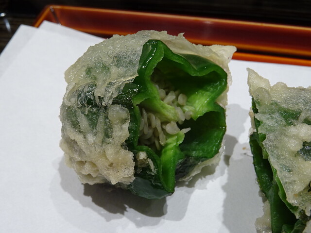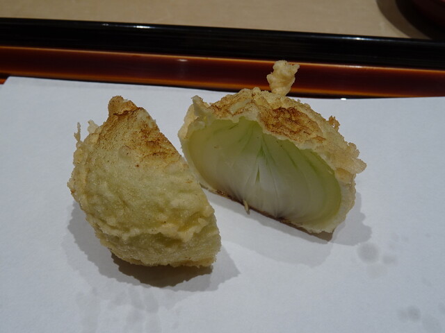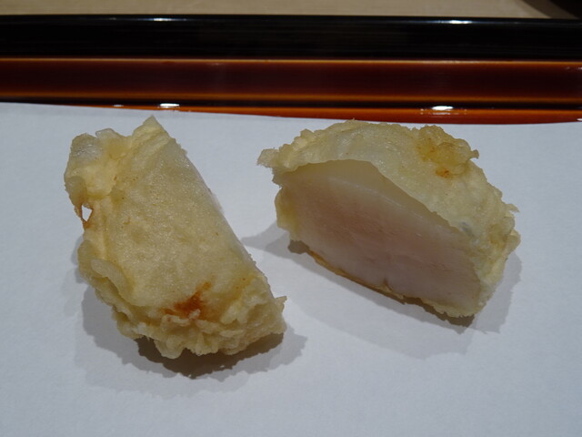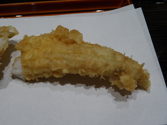 追加オーダーしたとうもろこし(1200円)は、粒が小さいのは意外だったが、かなり甘い。ただ甘いだけではなく、天ぷらにすることにより「香ばしさ」もプラスされる。これが天ぷらにするメリットか。とうもろこしは、初めて食べたが、これなら何度でもオーダーしたい。とうもろこしは、始まったばかり。