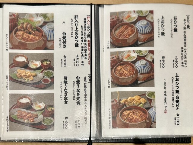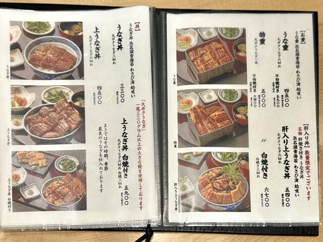 平日12:45に訪問。店内の座席稼働率は7割くらいでしょうか、並ばずに入れました。注文したのは、うな重白焼き付き(5,900円)。