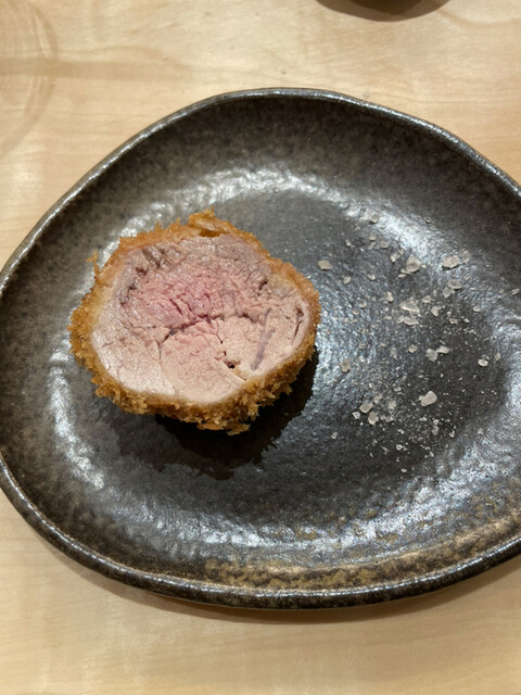 お肉の味を楽しむには、衣の面ではなく、お肉の面を舌側にと。
