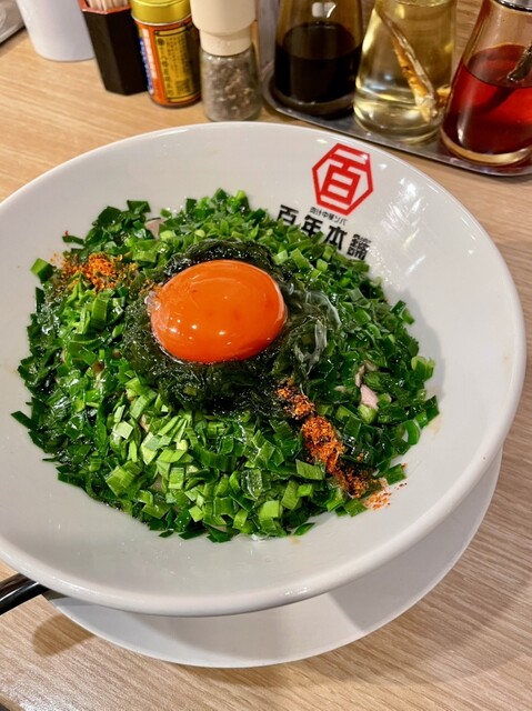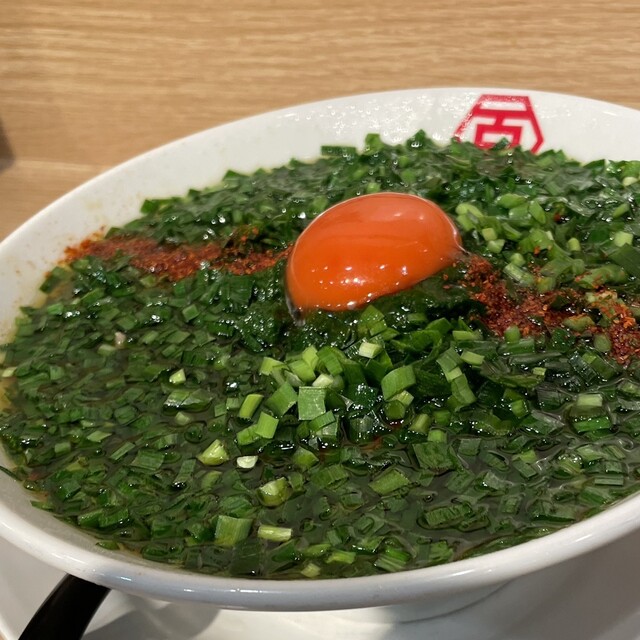 卵黄と特製ニラペースト、大量のニラを少し混ぜて先ずは一口。