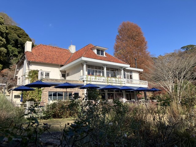 100円の入山料をお支払いし浄妙寺に入り坂を登ってこちらへ。大正時代に建てられたという洋館は一見の価値あり。特にステンドグラスが素晴らしい。