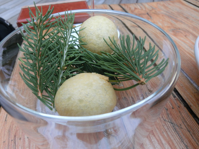 名物のデザート ハーブのシロップの玉にはsauge, origan, armoise, melisseなどが入っているそうです。