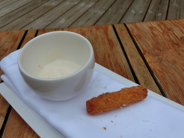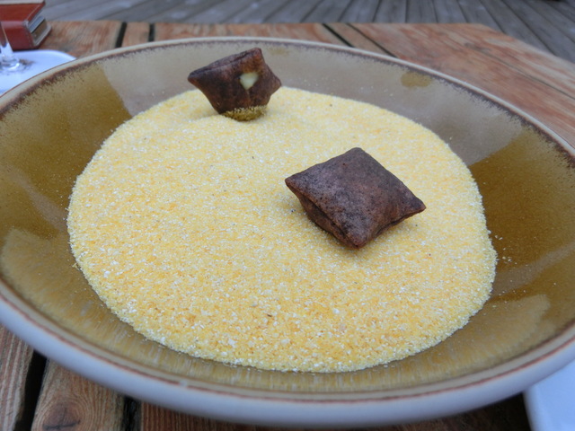 ポレンタの上のベニエ スモークしたクリーム入り