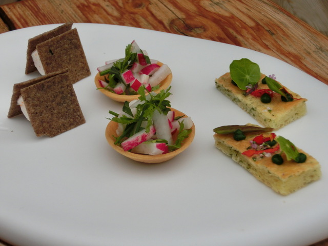 アペリティフが終わると、冷蔵庫代わりの菜園の前の席でお勉強席が用意されます。