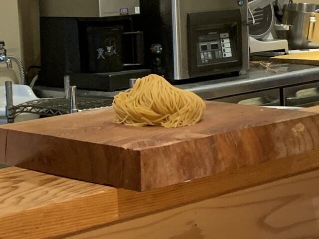 自家栽培小麦手打ちパスタ 菊池の水田ごぼう、馬肉、三つ葉