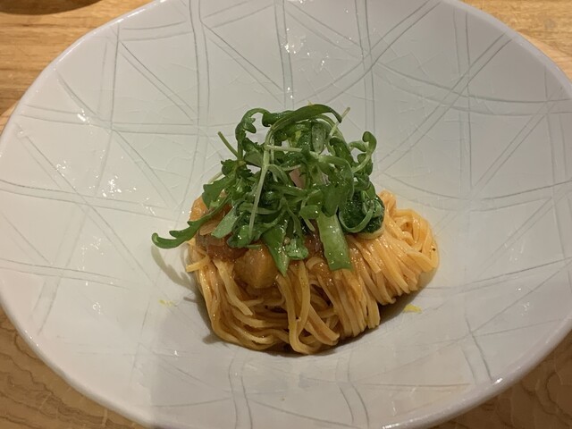 本田シェフ自家栽培小麦を使った麺料理は夏野菜のトマトの冷製パスタ