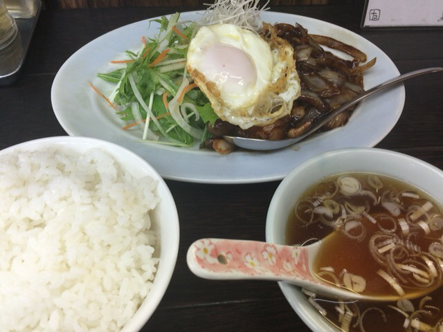 生野菜に、目玉焼きのトッピングも嬉しいです!スープも中華料理らしい味です。