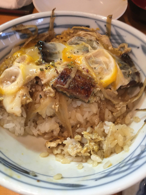 さて、丼の蓋を開けます。ふわっと、鰻の焼けた香りと卵の甘い香りがします。