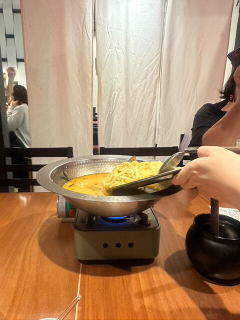 白もつ鍋が来たタイミングでは、店員さんが「ちゃんぽん麺の〆はタイミングを見てお持ちしますね」と声をかけてくれて、こちらのペースをしっかり考えてくれているのが嬉しかったです。ぷるぷるとしたもつの食感がたまりません。