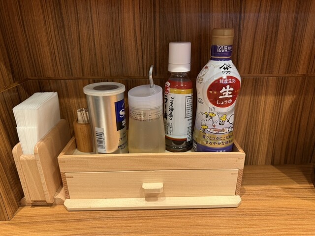 カウンター前の各種調味料など