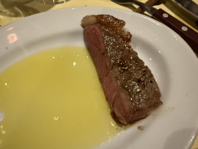 また30数年ぶりに食べたビステカは、味付けは控えめでしたが、自分の好みで付けられる、自家製ソースや岩塩、フランス産ブドウの調味料に、オリーブオイルなどがあり、いろんな味を楽しむことが出来ました。