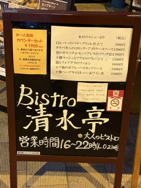 テーブル上には、ドリンクメニューとワインリストと、おひとり様メニューが。その他本日の料理メニューは、奥のテーブル席の間の壁に掲げられた黒板に書かれていて、席に座ると見えないので、写真を撮っておいて、手元で見るようにしました。