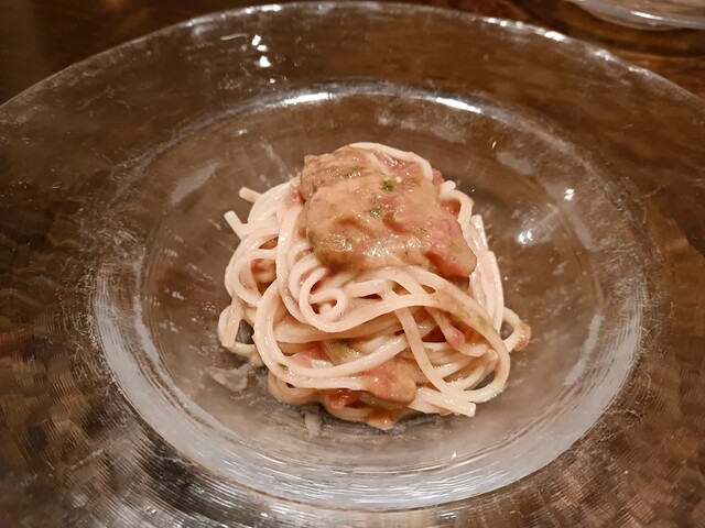 「北海道産生ウニと生のりの冷製バベッティーネ」