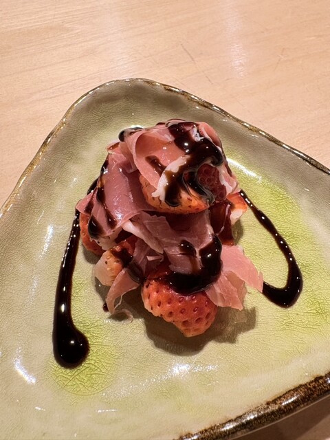 生ハムと季節の果物は今回はいちご。