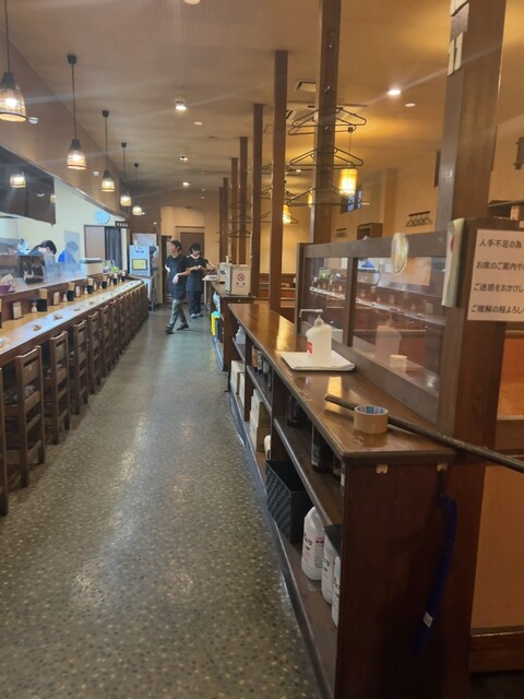 店内は満席の大盛況。奥まで続く長いカウンター。