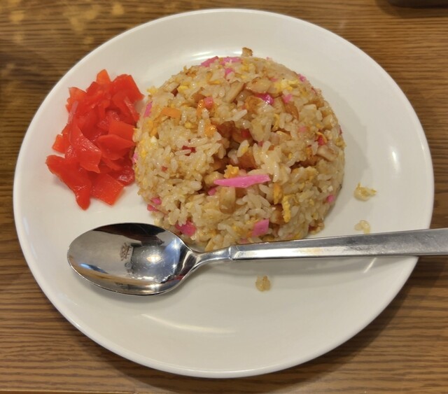 太宰府八ちゃん育ちとしては、昔懐かしく最高に旨い一杯。やきめしのピンクのカマボコも最高。