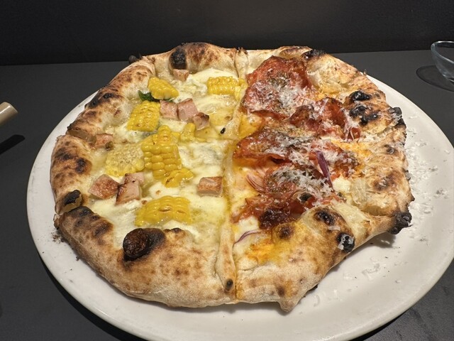 前者はトウモロコシの甘みがハムやチーズと非常に良くあった夏らしいピッツァ。後者は辛みが食欲をそそるもので、満腹気味でも美味しくいただけました。