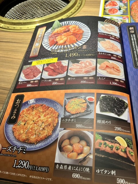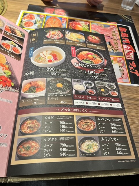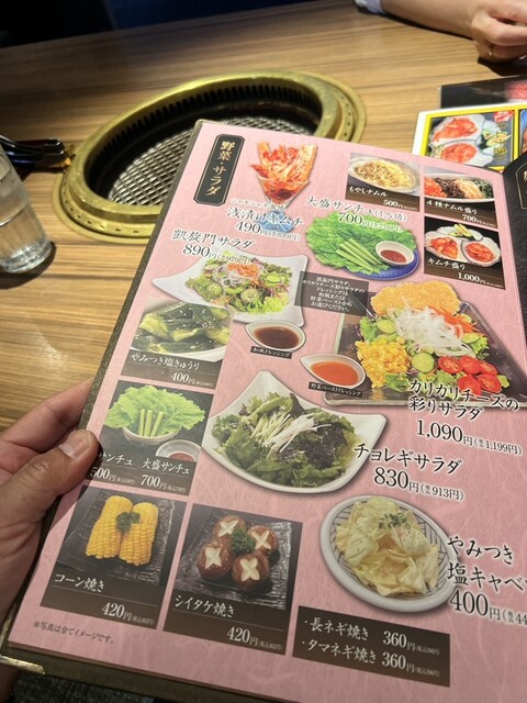 私たちは焼肉ランチ定食とホルモンを注文して、待つ事数分でサラダとキムチが配膳され、ご飯、肉、スープの順に出されました。