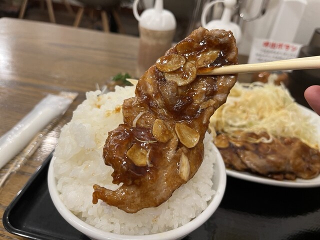 ニラ豚炒めの方は、ニンニク風味の醤油ダレで。