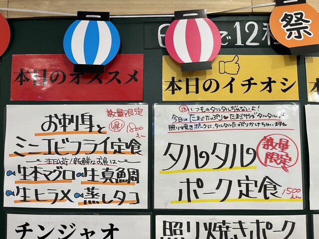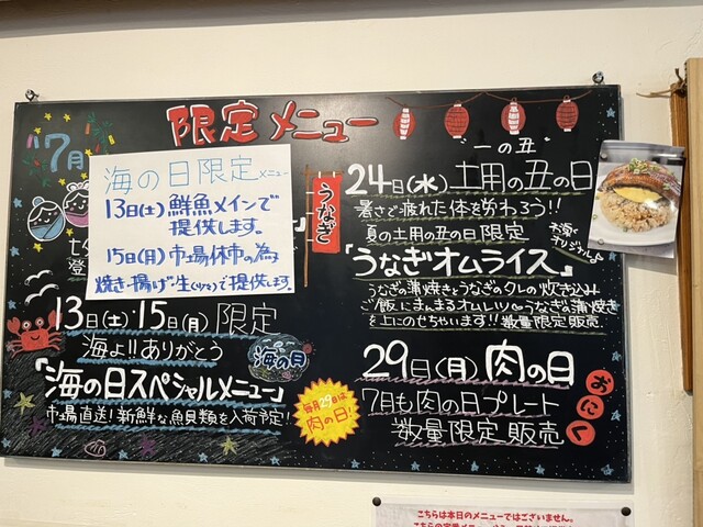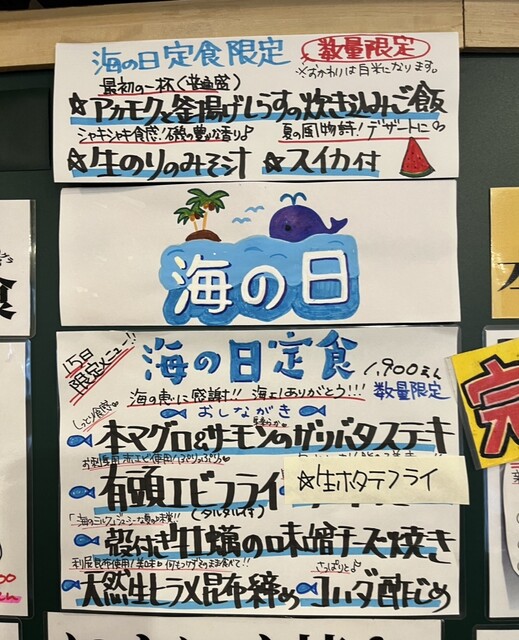 店外メニュー R6.7.15 17:50 “海の日定食”も完売