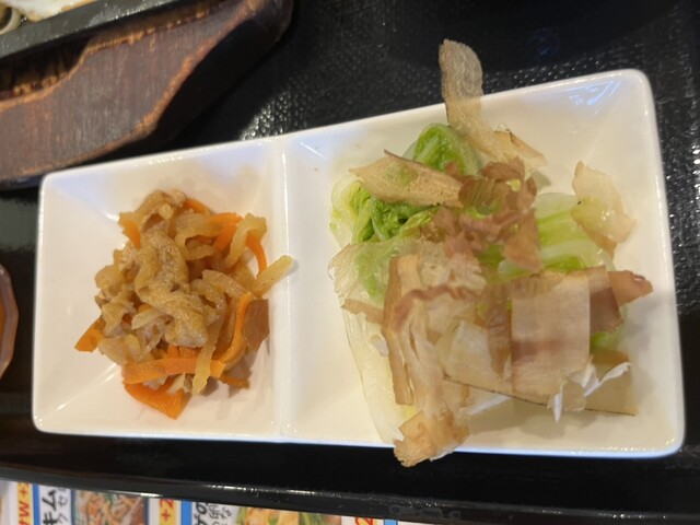 肉野菜炒めの方は、「本日限定 春キャベツ使用」って添え書きにひかれました。