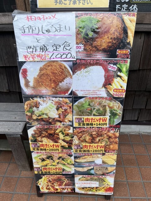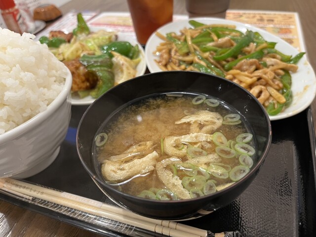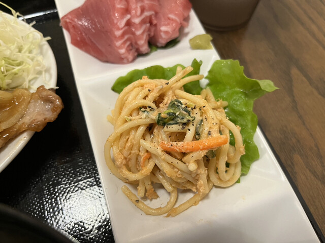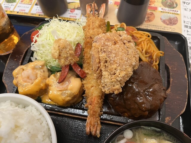 定食屋さんのシチューとロース生姜焼きとナポリタン