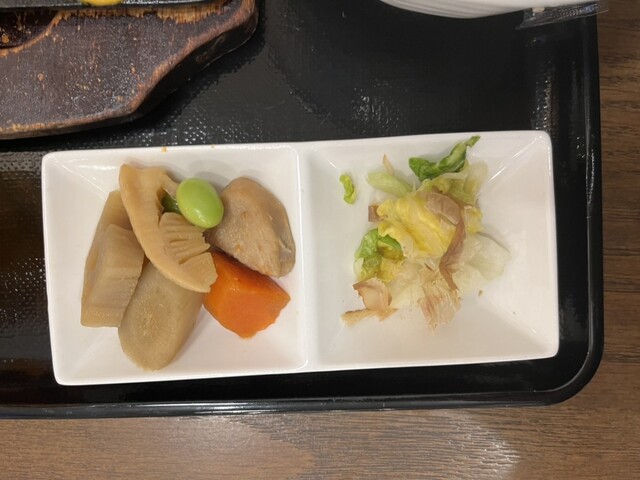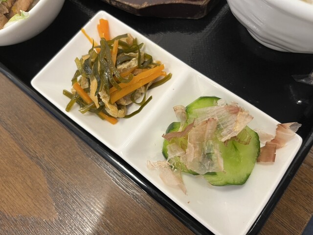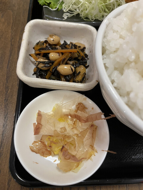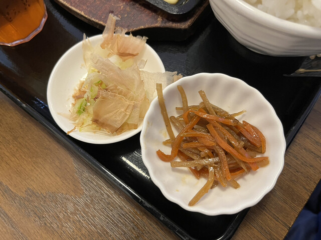 つけ合わせには、牛蒡の揚げ煮みたいなの…