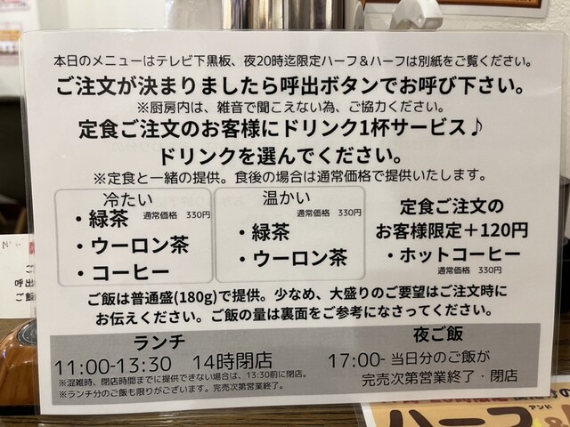 ハーフ&ハーフ定食(夜のみ) メニュー