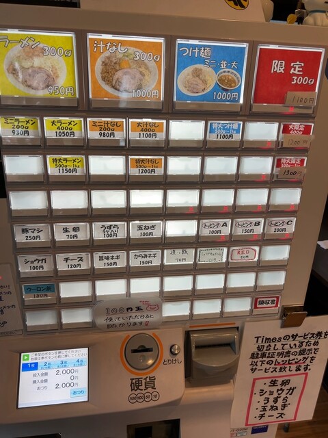 11時に開店しラーメン300gにぶた増しの食券を買おうとしたら最初から売り切れに設定されてる…