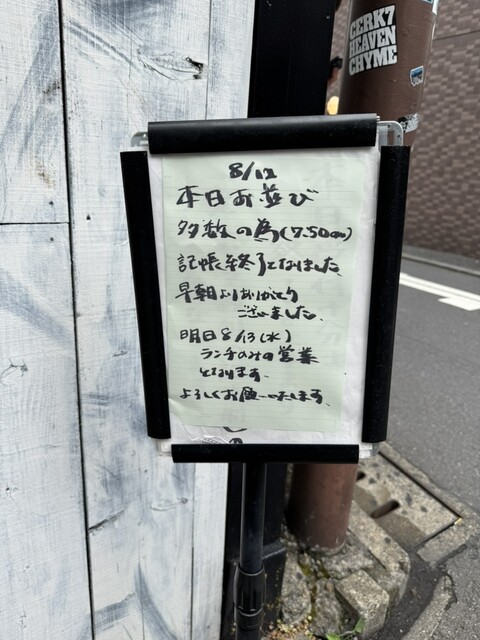 11:30に戻ると『本日お並び多数のため7:50で記帳終了となりました』と貼紙があり人気のすごさが伺えます。