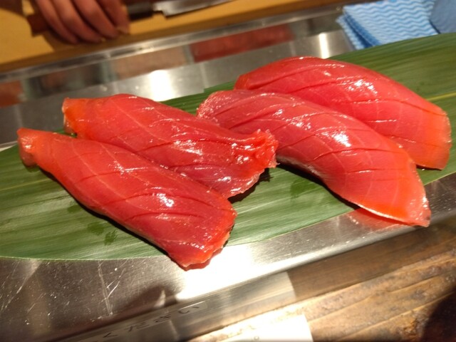 今夜のマグロ、寿司職人のリレーにより二通りの食べ方を楽しめました。
