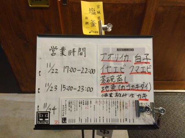 イスはないが大将の話しも楽しく、立っていてもあっという間の時間でした。