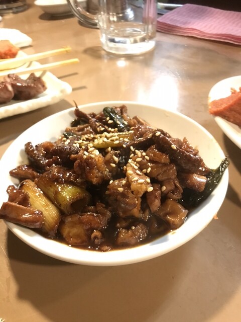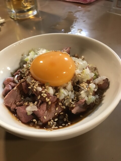 オーダーは塩ハツユッケ、葱レバー、煮込、ホルモン炒め、串焼き(シロ、ハラミ、タン)