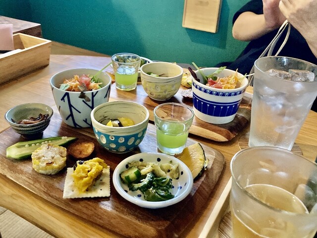以前あったらしいおつまみセットはやっていないみたいで、夜メニューの前菜のみ頼めたので、おつまみで前菜をいただきました。
